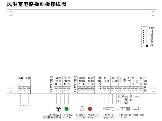 2、梓凈風淋室使用說明書>>副板接線示意圖: