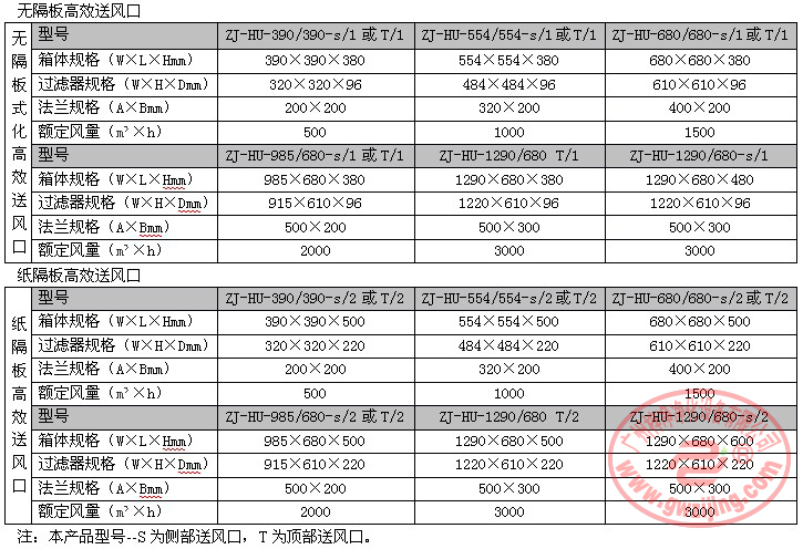 梓凈高效送風(fēng)口標(biāo)準(zhǔn)技術(shù)參數(shù):