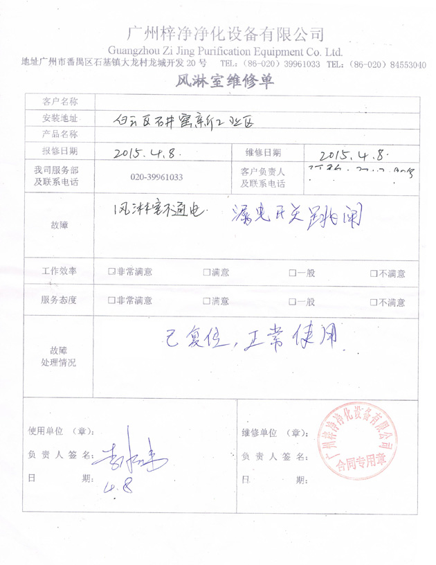 當(dāng)前位置:首頁 >> 風(fēng)淋門動態(tài) >> 梓凈風(fēng)淋室維修單梓凈風(fēng)淋室維修單