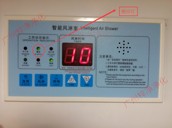 2、觀查風(fēng)淋室不吹淋時(shí)“感應(yīng)”燈是否一直閃亮;