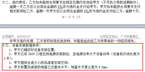 這個(gè)我們?cè)陲L(fēng)淋室合同協(xié)議中會(huì)注明安裝注意事項(xiàng)中-如下圖: