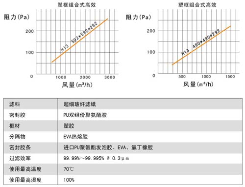 組合式高效過濾器由超細、防潮、耐炎的玻璃纖維制成。特別設(shè)計的熱溶隔膠可以確保相同的褶層間距,保證更好氣流以最小的阻力通過。相同的褶 層間距,充分的用了整個深度的濾材,保證了更大的容塵量。