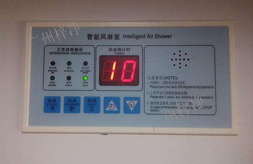 3、風淋時間設(shè)定:按“△”鍵增加,按“▽”鍵減少,每按一下增加或減少1秒鐘,考慮到進入無塵車間工作效率,一般設(shè)定為6秒。