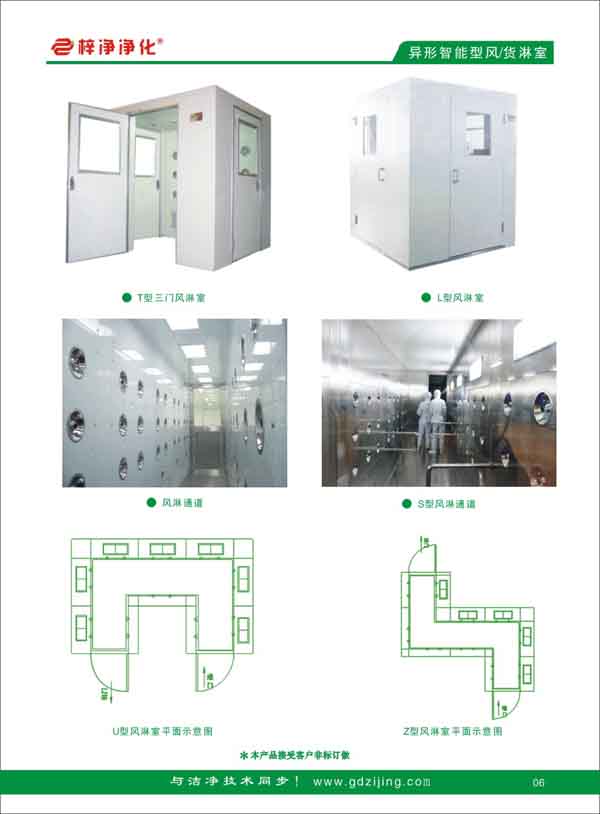貼心訂制:根據(jù)您的需求,異形風淋室通道可以訂做T形、L形、Z形、U形等各種形狀,不同材質(zhì)的風淋室。