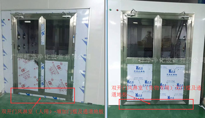 2、人淋風淋室設(shè)置門檻及通道地板–保證風淋室的密封性;