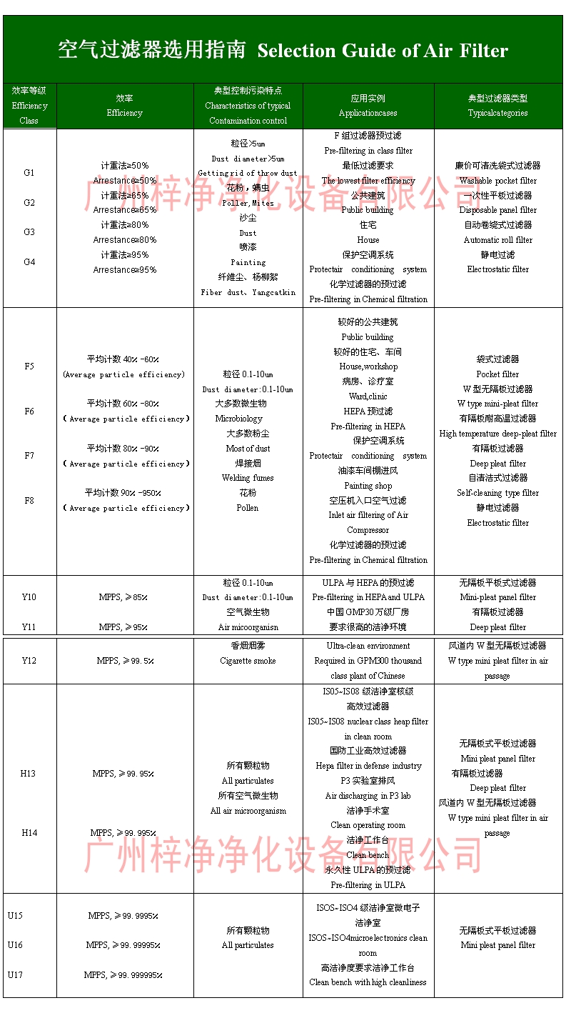 如選用空氣過濾器可參考下面空氣過濾器選用指南,或致電我們:020-39961033