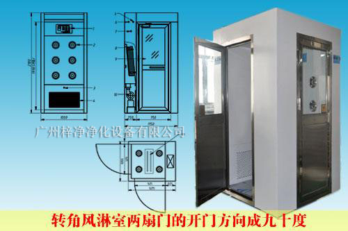 轉(zhuǎn)角風(fēng)淋室:轉(zhuǎn)角風(fēng)淋室由于設(shè)計在角落,其安裝方式可能更為復(fù)雜,需要特別注意角落的尺寸和空間的利用。