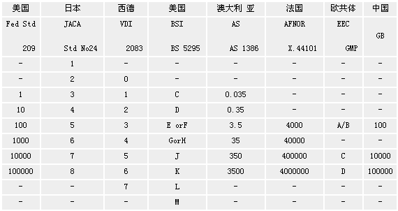 世界主要國(guó)家的潔凈室標(biāo)準(zhǔn)。美國(guó)是世界上最早頒布潔凈室標(biāo)準(zhǔn)的國(guó)家,各國(guó)的潔凈室標(biāo)準(zhǔn)都是在美國(guó)標(biāo)準(zhǔn)的基礎(chǔ)上,結(jié)合各國(guó)的實(shí)際情況而制訂的,我國(guó)的標(biāo)準(zhǔn)基本上參照美國(guó)聯(lián)邦標(biāo)準(zhǔn)和歐共體的標(biāo)準(zhǔn)而制訂的。
