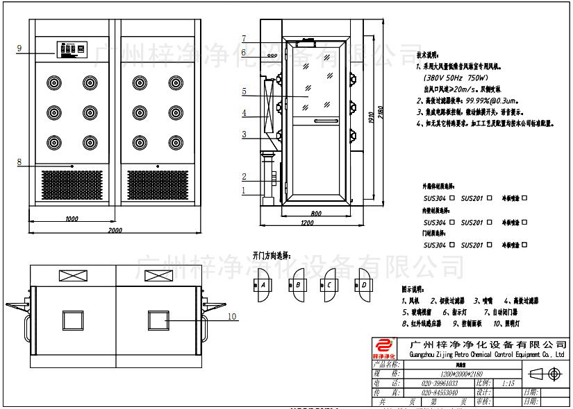 雙人雙吹風淋室尺寸標準參數(shù)是附合國內外潔凈室通用