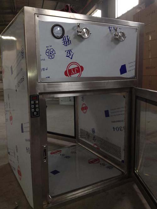 風(fēng)淋式傳遞窗/自凈式傳遞窗是根據(jù)風(fēng)淋室的型式設(shè)計(jì)而成,風(fēng)機(jī)迅速的將氣吹出經(jīng)過(guò)高效過(guò)濾器變成潔凈的空氣,潔凈的空氣由不銹鋼噴淋頭、嘴噴射出后氣流速度高達(dá)20M/S以上,可能性效地迅速清除物體表面附著的塵埃粒子。循環(huán)風(fēng)后經(jīng)過(guò)初效過(guò)濾器雙重過(guò)濾凈化效果顯著,使用性強(qiáng)。