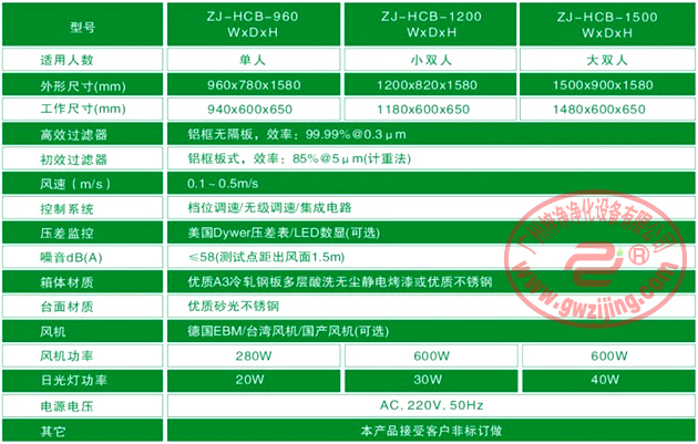ZJ-HCB水平流百級超凈工作臺技術規(guī)格參數