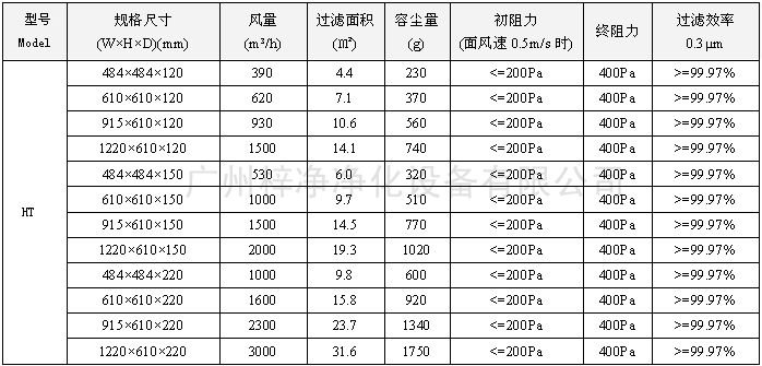 250度耐高溫高效空氣過(guò)濾器尺寸風(fēng)量容塵量技術(shù)參數(shù):